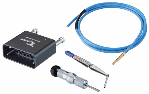 The PRX Plug Harness Kit contains everything required to assemble a harness to your specifications. The kit includes a housing with screw-lock hardware installed and a quantity of 1 to 26 individual RF cables with size-16 PkZ contacts pre-terminated on a choice of RF cable types to a custom length with a blunt-cut end. Contact insertion and extraction tools are included in the kit. The PRX Plug Harness Kit drawing PRX26Kxxxxxxxxx includes assembly instructions for building the harness.
